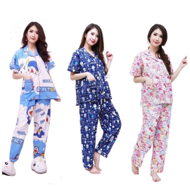 Bit Shop Promo Piyama Baju Tidur 3in1 Wanita Dewasa Motif Karakter Doraemon Kotak Catur Ld 104cm Fit To Xl Lazada Indonesia