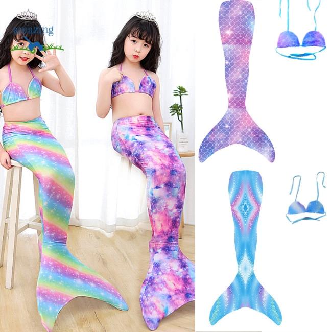 3 Potong Set Pakaian Renang Ekor Putri Duyung Anak Perempuan Setelan Bikini Susu Sutra Warna Warni Untuk Anak Perempuan Lazada Indonesia