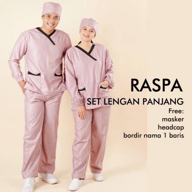 Setelan Baju Jaga Baju Ok Scrub Dokter Lengan Panjang Model Raspa Bisa Custom Ukuran Shopee Indonesia